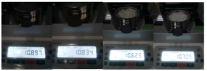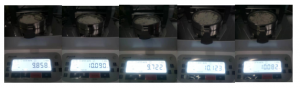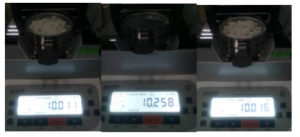- 將防風(fēng)盤、支架、樣品盤一一裝好,接通電源,按下開機鍵,顯示屏進入開機界面,首先按去皮鍵減去樣品盤重量,后將100g砝碼放入托盤進行校準;